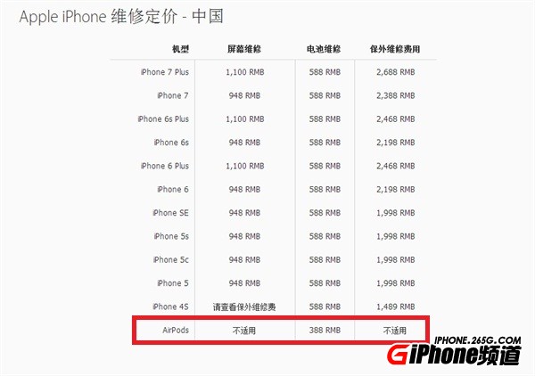 下面小編就為大家介紹一下AirPods更換電池的價格:
