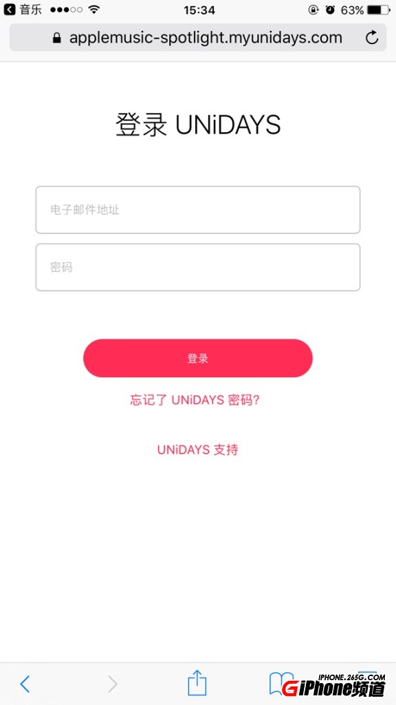 4. 收到通過學生認證後,進入 Apple Music 中選擇學生訂閱,並點擊“驗證資格”按鈕進入 UNiDAYS 的驗證界面,選擇已通過學生認證,然後進入一個登錄頁面,輸入 Apple ID 與密碼,隨後你的 Apple ID 郵箱會收到一封完善信息的郵件。