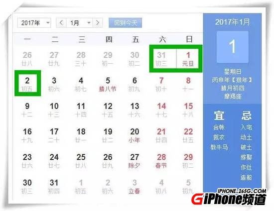2016年12月31日-2017年1月2日調休,總共休息三天,其實等同於元旦就放了一天假