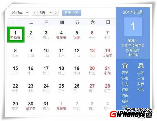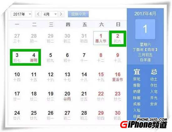2017年4月29日至5月1日放假調休,放假3天