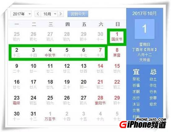 六、中秋節、國慶節:10月1日至8日放假調休,共8天。9月30日(星期六)上班。