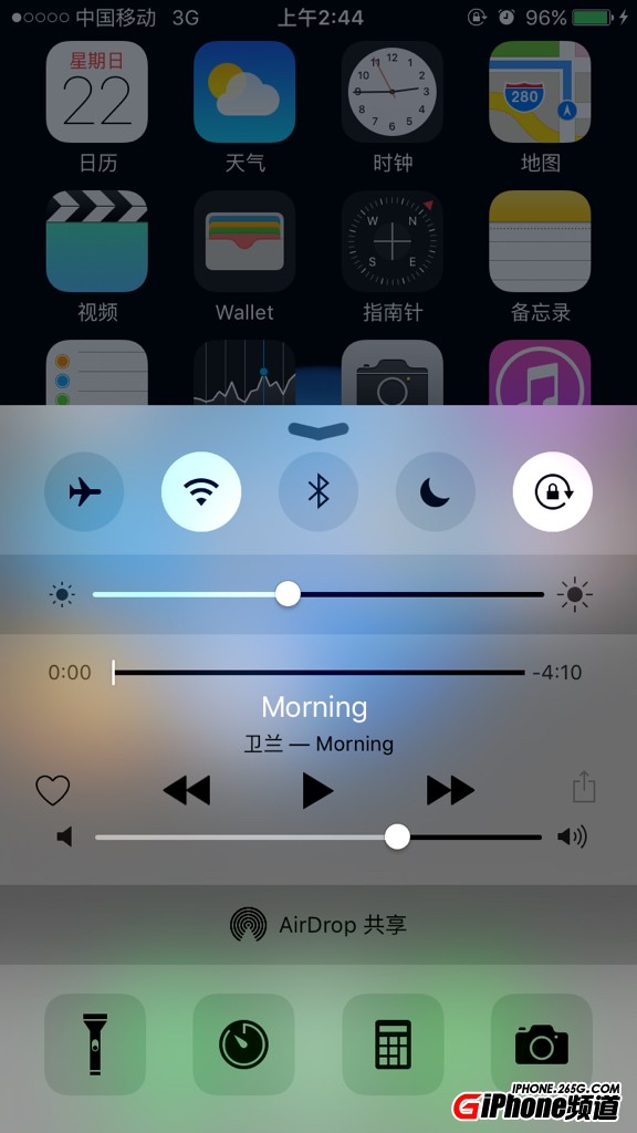 方法一:上滑屏幕,打開控制中心,滑動亮度調節按鈕