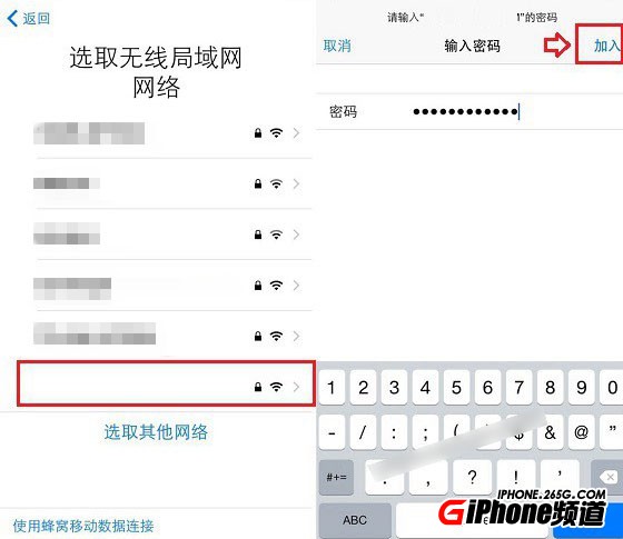 第三步,因為激活過程中手機需要聯網,因此你要搜索和連接附近的WiFi,輸入密碼並點擊【加入】。