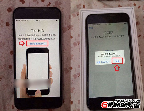 第九步,密碼創建之後就開始進入到Touch ID指紋識別設置界面。當然了,指紋識別也是可以進入系統之後設置,所以這個時候可以直接點擊『稍後設置Touch ID』,在彈出的確定對話框中,點擊『繼續』,如圖所示。