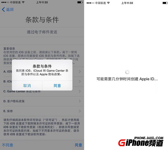 第六步,輸入賬號登陸後,可以看到蘋果的“服務與條款”,點擊下方的【同意】。