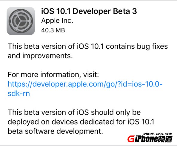 iOS10.1 Beta3固件下載_iOS10.1 Beta3下載地址 蘋果今天推送了iOS10.1第三個開發者預覽版,主要是bug修復和性能提升,小編給大家整理了其固件下載大全,需要的網友可以下載使用。