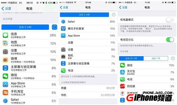 iOS 10 完成升級之後,不一定是系統造成耗電,有可能是別的應用程序霸占設備過多資源而導致。這個時候,你可以進入“設置→電池”查看是哪些最耗電,特別是後台工作耗電的應用程序。有條件的話,最好在 iOS 9 的時候保留截圖進行對比。如果是某個程序大量耗電,極為異常,使用量不大,而且之前從未出現過。此時你可以進入 App Store 去查看是否有該應用程序的更新,因為在大多數情況下,可能是不兼容 iOS 10 或沒有為新版本優化的一些 BUG 導致,當應用程序開發者修復或提高性能之後就能解決。
