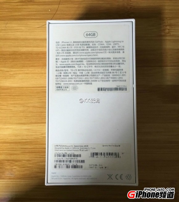 就在大家耐心等待iPhone 7正式發布的時候,網上不止一次出現不同的聲音,稱這代產品其實會叫做iPhone 6SE,明年的十周年版才配得上iPhone 7這個名號(也有的猜明年會叫iPhone 8)。微博網友@KK低調 曝光了一組照片,完整展示了所謂iPhone 6SE的包裝盒。從正面蘋果LOGO,到側面iPhone 6SE標記,再到背部規格表,以及內部說明書,全都清晰可見。