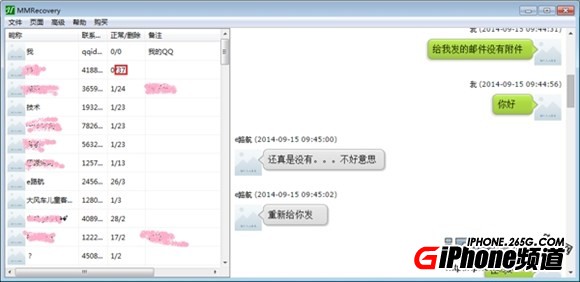 目前騰訊的QQ仍然是我們辦公和生活主要的即時通訊工具之一,最近我們發現iPhone用戶經常發生誤刪除QQ聊天記錄的情況。一旦QQ聊天記錄被誤刪除了我們該怎麼辦呢?由於QQ所使用的數據庫對於刪除的記錄並沒有真正的物理刪除,只是打上了刪除標記的邏輯刪除,只要恢復及時還是有可能恢復的。在這裡小編將為大家介紹一種蘋果QQ記錄的刪除恢復方法,該方法非常簡單對於一般的手機用戶都可以獨立操作,並且無需發送數據文件,真正有效保護用戶的個人隱私。下面是使用恢復工具MMRecovery實際恢復QQ聊天記錄的效果圖: