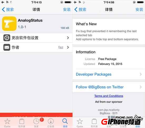 AnalogStatus 是一款最近上架 Cydia 的越獄小插件,它可以讓狀態欄的時鐘以模擬方式顯示,而非默認的數碼方式。對於使用模擬方式顯示時間,相信 Mac 用戶不會感到陌生,在 OS X 的菜單欄中,用戶就可以選擇讓時間以模擬方式或數碼方式進行顯示。現在在插件的幫助下,iOS 平台也可以實現同樣的效果。