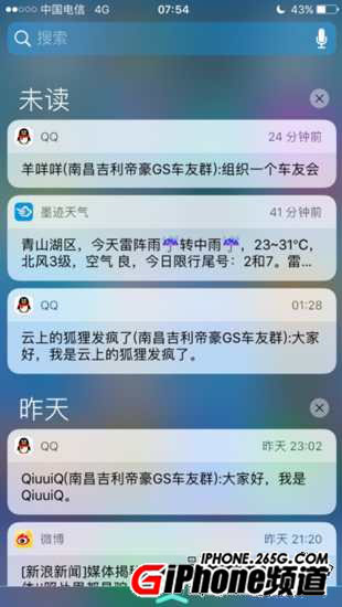 3、下拉通知:取消今天頁面增加了搜索框,通知顯示效果由線條分割改為條框式,這樣看起來消息更加突出。