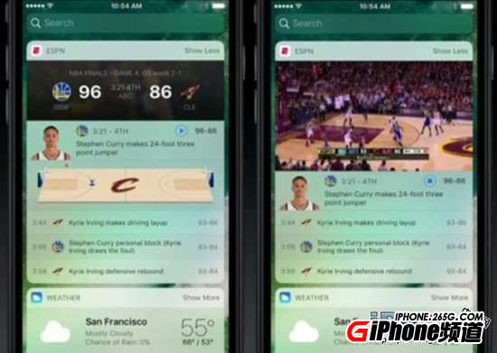 通過3D Touch功能,用戶可以在通知欄裡對所有通知進行清除。用力按壓未讀通知旁的X號,既可選擇將所有通知清除。在第二個測試版本中,一個小的變化是“未讀”改為了“近期”。這個功能其實在很多Android設備上早就已經實現了。