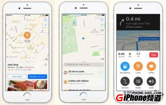 iOS10中的蘋果地圖會為你推薦你感興趣的地方,並給你推薦最快的路線。另外增加了實時交通信息,配置CarPlay的司機會得到蘋果地圖據實時交通信息提供的最優路線。