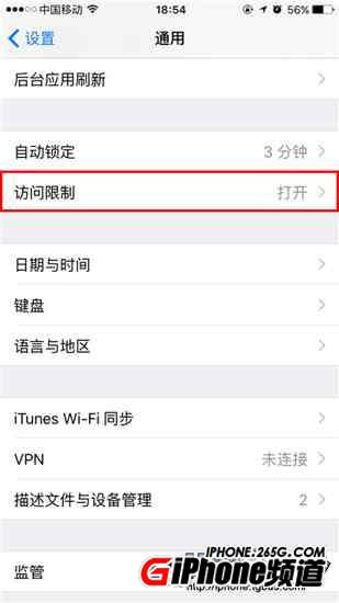 ②在通用列表張,找到【訪問限制】選項,點擊打開