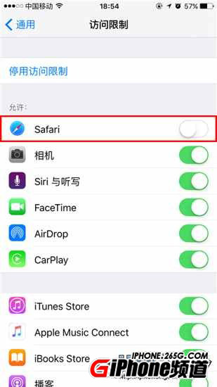 ③進入頁面後,找到【Safari】選項,滑動關閉即可