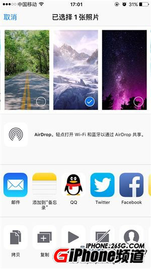 ①在【照片】應用中選擇【一張照片】,再點擊【分享】按鈕