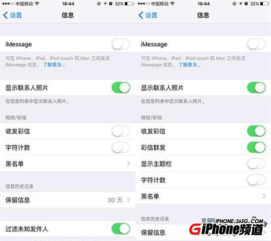 ①【設置】-【信息】-【收發彩信】選項,點擊開啟