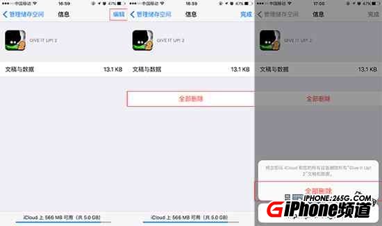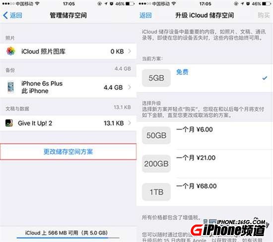 ④在管理儲存空間中,可以查看儲存信息、刪除儲存內容和購買儲存空間等。