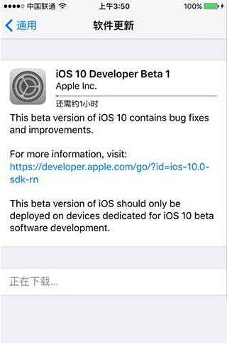 第四,按照說明開始下載並且安裝 iOS 10 Beta 1 ,注意,這個版本的系統還不穩定,它並不太適合我們日常生活使用,不過,該版本的系統已經包含了絕大部分功能,所以它肯定可以滿足那些要嘗鮮或者獵奇的朋友。