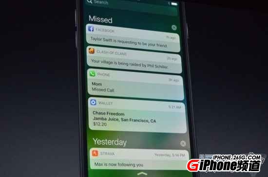 iOS 10重新設計了鎖屏界面,更豐富的通知,應用快速交互,更廣泛的3D Touch壓感操作。