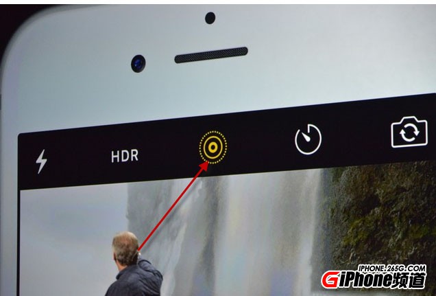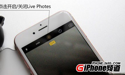 其實,iPhone 6s關閉Live Photos非常簡單,只要打開相機,然後點擊HDR右側中間位置的Live Photos功能按鈕就可以開啟或關閉Live Photos,如上圖所示。