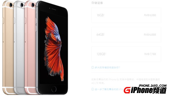 除了空間版本不一樣之外,iPhone6S還有深空灰、銀色、金色、玫瑰金色可選,售價均相同。