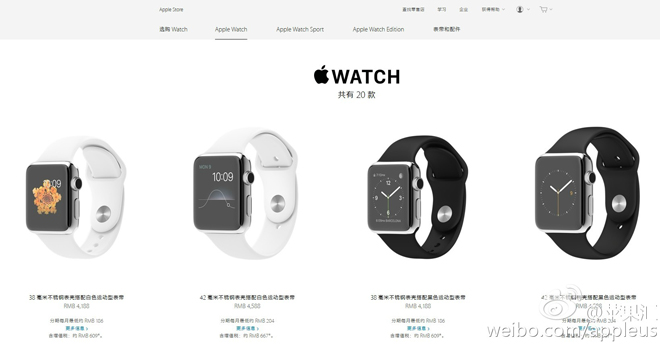 其中Apple Watch采用了不銹鋼表殼和表帶,根據表盤大小和表帶材質不同有不同的售價,一共有20個版本,售價4188元起。