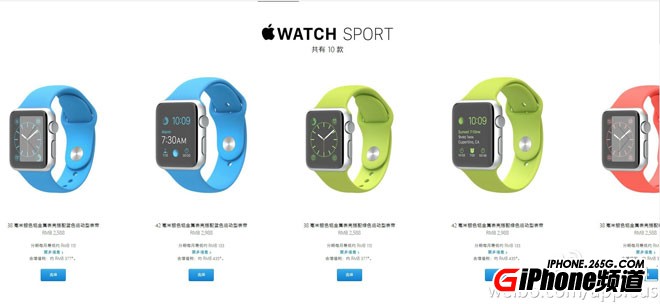 Apple Watch運動版采用鋁制金屬表殼和人造皮革表帶,根據表盤大小和表帶材質不同有不同的售價,共有10個版本,售價2588元起。