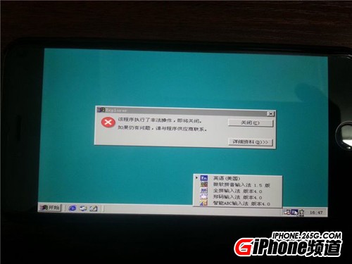 當然了,畢竟不是刷來的系統,所以這個Win98並不能執行“.exe”的文件安裝。貌似除了這個問題之外,在其他方面的表現還都是相當良好的,尤其是還可以隨意地切換輸入法。實話實說,不知道“內幕”的人還真以為這是一款山寨版的iPhone 6 Plus。