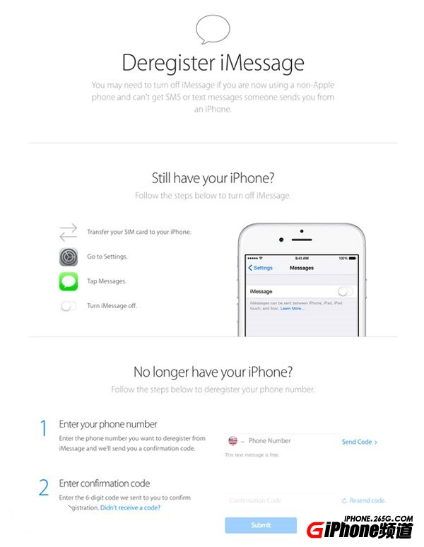 對於那些已經放棄iPhone轉而使用其他智能手機的用戶,蘋果的這個網站提供一個區域,用戶輸入手機號碼後會收到確認碼,輸入確認碼之後便可確認注銷iMessage。蘋果也再次重申了iPhone用戶可如何注銷和關閉iMessage。