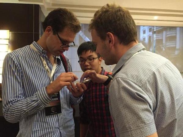 一名 Evad3rs 的粉絲在會上向 Evad3rs 提議,為什麼不嘗試越獄 Nokia Windows phone 呢?這是個還未有人破解的難題。瞧他們看 Nokia Windows phone 的眼神,他們似乎找到了下一個挑戰的對象。誰知道呢。或許如果 iOS 8 一直沒有人有本事破解,他們又對 iOS 8 越獄重燃興趣了。