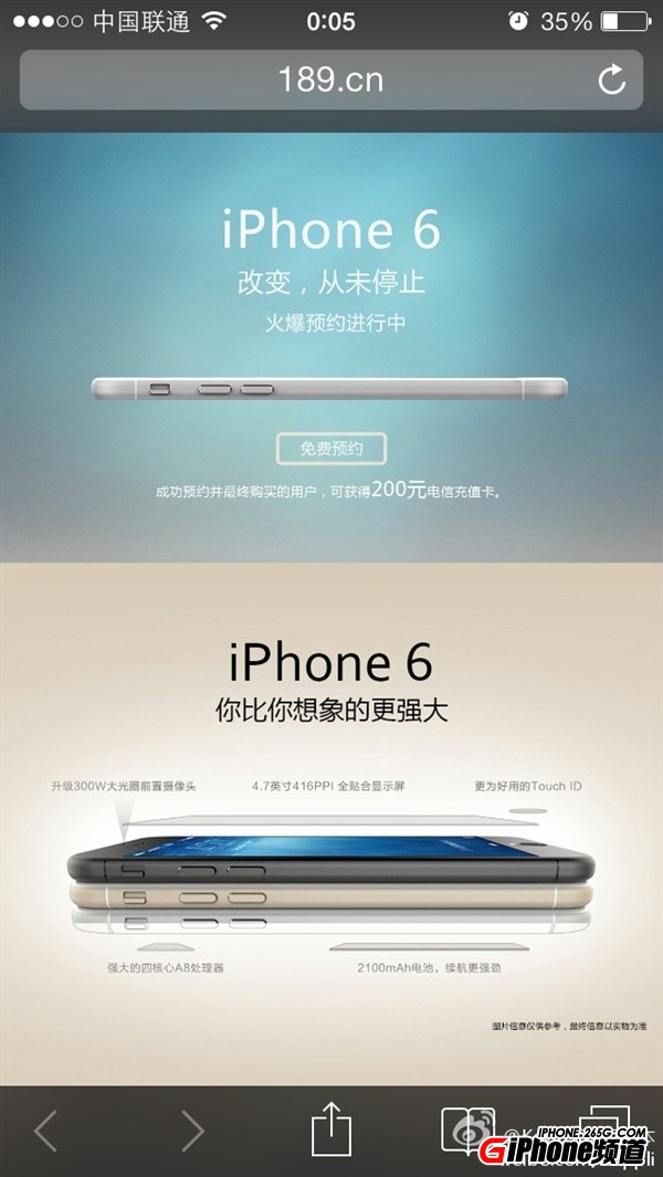 但預約頁面並未透露購買價格,而據此前中國聯通曝光的信息顯示,4.7英寸iPhone 6零售價為5288元起,5.5英寸的iPhone 6零售價為6288元起。