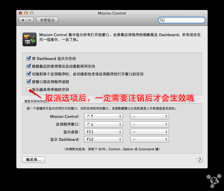 依次進入“系統偏好設置”、“Mission Control”,然後取消勾選“顯示器具有單獨的空間”之後注銷系統重新啟動PVP,接下來就是見證奇跡的時刻。undefined