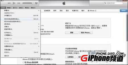 4、接下來我們就回到了iTunes軟件界面,這時我們要點擊“文件”菜單中的“將文件夾添加至資料庫”,之後選取之前用iTools軟件導出的Music文件夾,完成之後,iPhone中的音樂文件就完整的導出至電腦了。