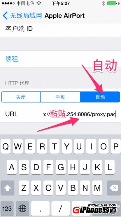 4. 進入設置 ➡️ 無線局域網 ➡️ (i) ➡️ 粘貼或輸入電腦上Goagent的Pac Server後的URL