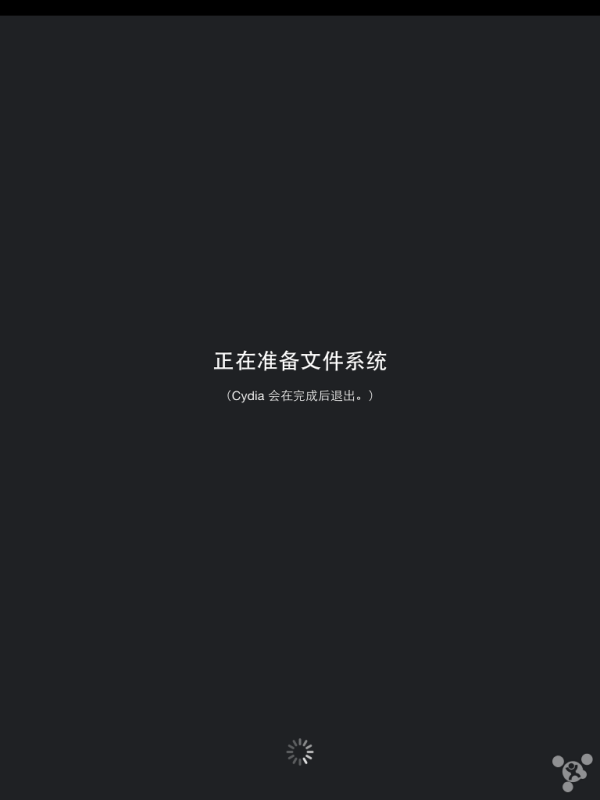 12.此時,設備會自動重啟,當重啟完成後您可以解鎖您的設備,看到桌面上熟悉的Cydia。,點擊Cydia會提示“正在准備文件系統”,稍等片刻,完畢會自動注銷桌面。
