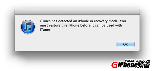 步驟四、重新用數據線連接PC,這時iTunes將檢測到你的iOS設備正處於恢復模式(如下圖所示),然後選中你的iOS設備,同時按下“Shift”鍵+恢復iPhone按鈕。