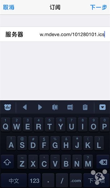 第三步:打開你的 iPhone,進入設置>郵件、通訊錄、日歷>添加賬戶>其它>添加已訂閱的日歷>輸入剛才記下的地址>下一步,如果沒有錯誤則點存儲。