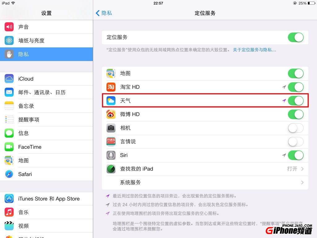 進入【設置】-【隱私】-【定位服務】-打開“天氣”選項
