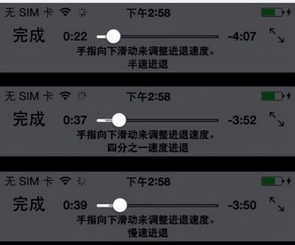 讓你的iOS7看電影快進更准確 小提示幫你忙。在聽音樂放歌或者看電影視頻的時候,點擊進度條上的圓點能拖動進度相信大家都知道了。但只要在點住圓點後,不放開,垂直向下滑動,再朝左右邊滑動,就能精確快進或快退的時間。垂直向下的距離越遠,快進或快退就能越精確!!