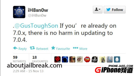 此外,著名的黑客iH8sn0w也發出了同樣的聲音,他表示iOS 7.0.4沒有帶來任何安全方面的改動。