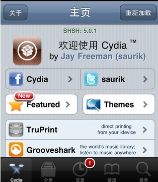如果你點了取消,可以在Cydia主頁的下端,找到“變更”頁面點擊左上方的“刷新”按鈕動更新。