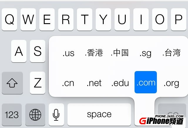 在需要輸入網址的情況下,長按.就會彈出.com .net等網址後綴。