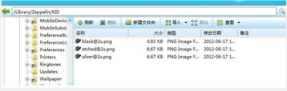 4、在/Library/Zeppelin 隨便命名創建一個文件夾,然後將這三個圖放入