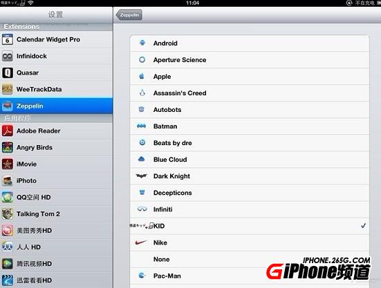Zeppelin是一個簡單的修改ios運營商logo的插件,該插件允許您自定義主題。您可制作多款自己想要的logo主題放入,隨時切換!
