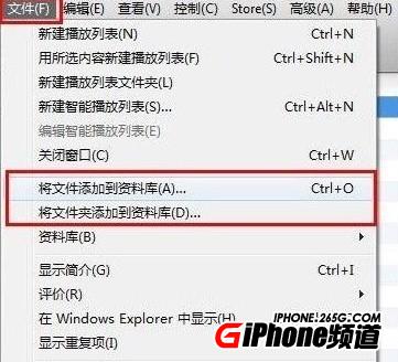 在itunes的最頂端的菜單欄裡找到【文件】,點擊出下拉框,如下圖,會看到兩個選項,有兩種形式的添加: