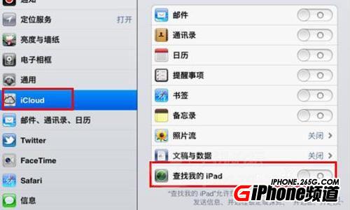 3、輕輕點擊iCloud選項,然後選著添加賬戶,此時,輸入你個人的iTunes賬號即可。下圖是登陸後的完整界面。然後,選著打開“查找我的iPad / iPhone / iPod”選項。