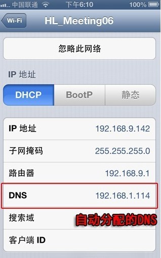連接上之後點擊右側的箭頭查看這個無限連接(WIFI)的詳情,會看到自動分配的DNS,如下圖: