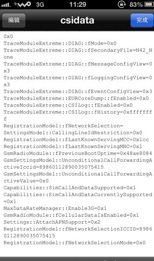 打開ifile、進入/var/wireless/Library/Preferences/、最下面有個csidata、用文本打開、翻到最下面、找到MaxDataRateManager::Enable3G=0x1!!