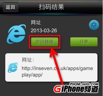 2.使用二維碼掃描器掃描以上二維碼後,將網頁分享至浏覽器Safari中去